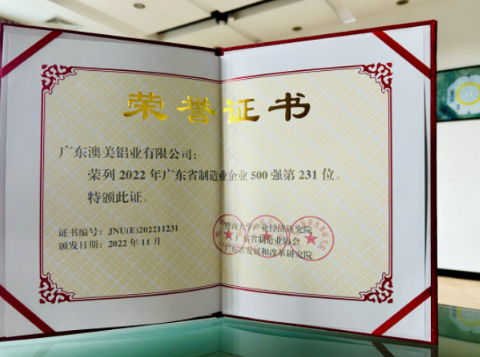 齊力澳美蟬聯(lián)廣東省制造業(yè)500強(qiáng)榜單