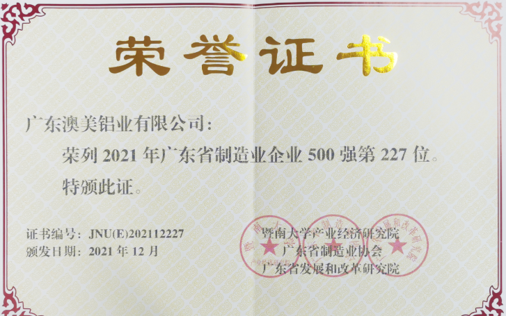 澳美鋁業(yè)再次入選 排名躍升至227位